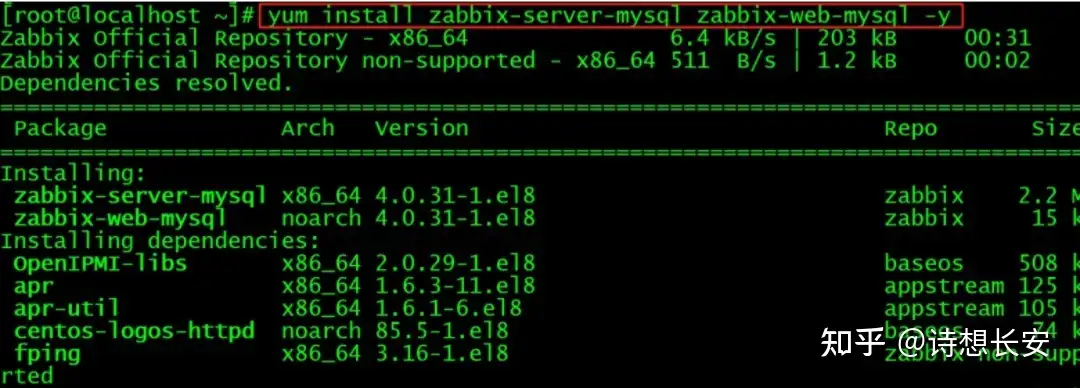 yum install zabbix-server-mysql zabbix-web-mysql -y