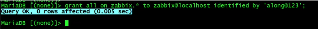 grant all on zabbix.* to zabbix@localhost identified by 'along@123';