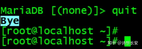 使用quit 退出数据库: