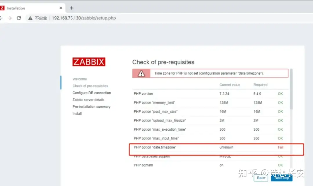 打开浏览器,输入:ip地址/zabbix:
