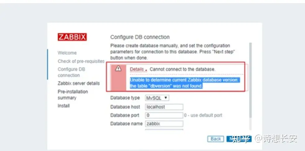 Unable to determine current Zabbix database version,the table "dbversion"database version