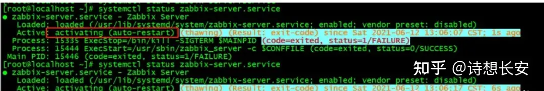 发现zabbix-server服务状态没起来: