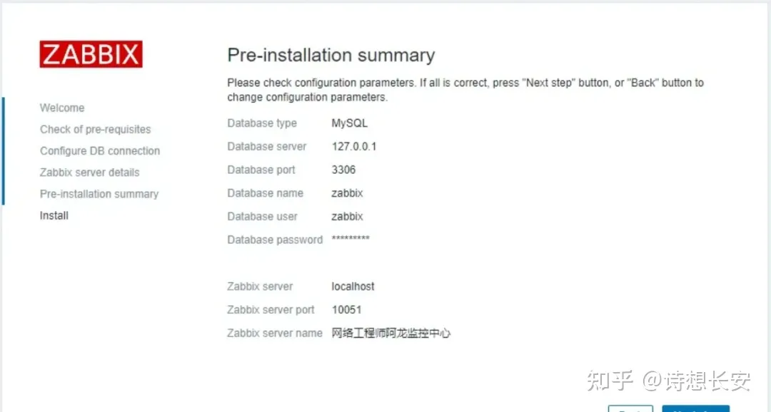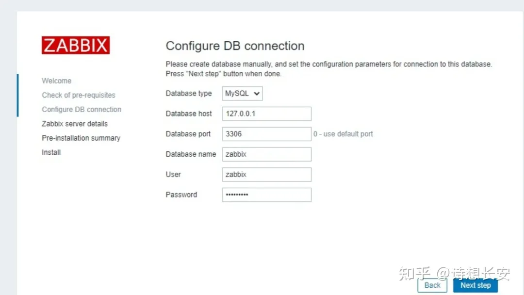 DBHost=localhost //或写127.0.0.1 DBName=zabbix DBUser=zabbix DBPassword=along@123