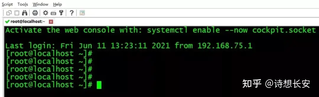 4、如果你不喜欢用linux自带的终端,联通后了,这时你就可以使用物理机上的SecureCRT了: