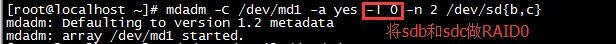 auto=yes:决定新建后面接的团建磁盘阵列设备名,即/dev/md[0-9]。